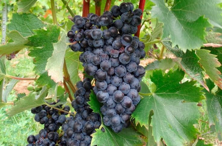 - Description : port retombant, très vigoureux , produisant des grappes moyennes à grandes, ramifiées, généralement coniques, avec des baies moyennes de grosseur irrégulière, une peau de couleur noir bleuté recouverte d'une pruine abondante non persistante. Maturité de première époque moyenne.