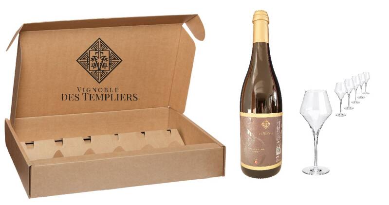 - 6 verres sérigraphiés au logo du vignoble et portant la mention "parrainage des vignes"