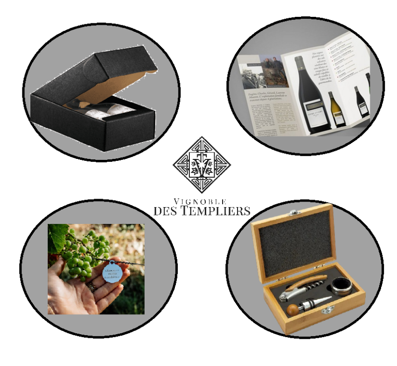 - Certificat d’adoption de votre pied de vigne, Dossier de présentation du domaine et coffret d’accessoires sommelier,