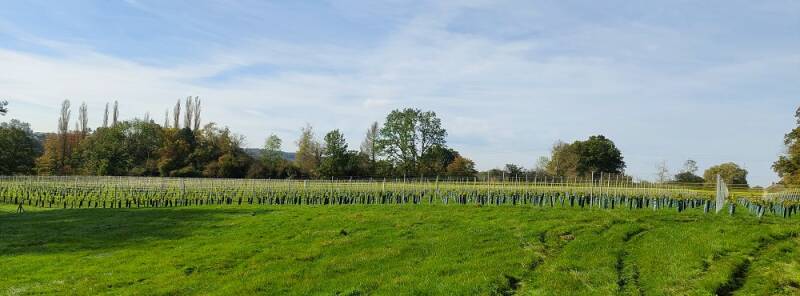Situé à 4,5 km de la première parcelle, la terre des 9 bonniers bénéficie, elle aussi, d'une orientation sud en légère pente. La parcelle est entourée d'arbres. Nous avons dû y réaliser plusieurs aménagement avant plantation au cours de l'hiver 2021 et du printemps 2022.